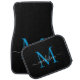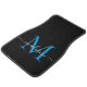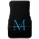 Modern Black Bright Blue Monogram Elegant Script Car Floor Mat