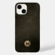 Simple Modern Brushed Metallic Gold Monogram Emblem Distressed Leather Texture Phone Case. Elegant brushed metallic gold monogram emblem with monogrammed initial in modern typography on a distressed leather texture background in shades of black chestnut brown.