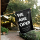 This simple "We are open" flag will help to advertise your business or to promote your brand name to customers or clients. Customize it with your business logo, business name, address, phone number and more. You can change colors and fonts by editing in design tool.
