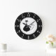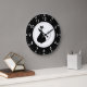 Perfect for the cat lover, this unique and modern black and white clock design has white paw prints on the outer edge and a black cat in the center.
