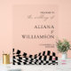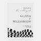 Elegant wedding welcome acrylic sign featuring "the wedding of" in a modern black calligraphy script with a clear background (or color of your choice) and black checkered pattern giving a vintage,groovy and old money vibe. Personalize the black and white wedding sign by adding your names, wedding date, and wedding location. The vertical acrylic welcome sign is designed to coordinate with our Modern Elegance wedding collection and is available in other colors/style options.