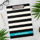 Modern Black, Cream & Turquoise Stripe Clipboard