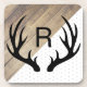 Modern Black Deer Antlers Faux Wood & Pattern Beverage Coaster
