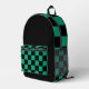 Stand out with the Print Cut & Sew Backpack, featuring a modern geometric pattern in vibrant green and blue tones on a sleek black background.