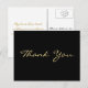 Modern Black Elegant Faux Gold Script Thank You Postcard