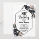 Modern Black Floral 80th Birthday Party Invitation