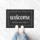 Modern Black Floral and White Personalized Welcome Doormat. Bold typography.