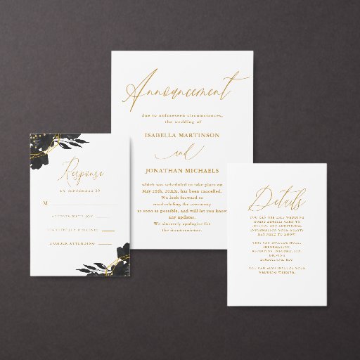 Modern Black Floral with Faux Gold WeddingDesigned by Kathy B.