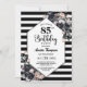 Modern Black Floral Striped 85th Birthday Party Invitation