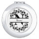Modern Black Floral Wreath Split Monogram "N" Compact Mirror