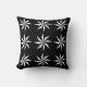Modern Black Geometric Floral Pattern Throw Pillow in Black and White colors. Made in the U.S.A. from the highest quality cotton or polyester. Decorative throw pillows with a geometric floral pattern in contemporary colors. Available in 16 or 20 inch square and 13" by 21" rectangular sizes. Insert included. (Also available as a patio or garden pillow, just select outdoor from the Fabric tab and choose the size you need).