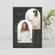 Geometric modern typography elegant black gold 2 photo arch graduation announcement card.