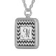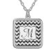 Modern Black Glitter Chevron Zig Zag Stripe Fabric Print Pattern Monogram Initial Necklace