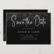 A simple modern save the date card. Personalize this minimalist black and white design to have your personal details and message. Features script calligraphy typography and faux glitter image background.