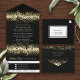 This Inspired Black Luxury Glitter All in one Wedding invitations that include the wedding info and RSVP postcard that your guests tear off and and send. An chic combination of glitter confetti complemented by elegant font contrast with elegant black background.