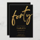 Modern Black & Gold 40th Birthday Invitation for Him. Celebrate his big 40 in style with this modern, minimal black and gold birthday invitation. The sleek design features bold simplicity and a faux-gold script reading “Forty” for a clean, masculine look. Personalize the details to create the perfect invite for a classy, unforgettable milestone celebration. Ideal for an elegant dinner, cocktail party, or upscale birthday event.