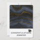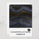 A graduation congratulations card with a black graduation cap and a beautiful image of dark abstract agate stone. Colors swirl in waves. Main colors are black, blue-gray with a faux-gold ribbon running through the design. Modern and trendy.