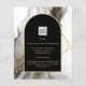 Introducing our luxurious black and gold wedding stationery collection, featuring a stunning smokey black and white with gold accents agate look backdrop and arch frame for the text. This design is perfect for couples who want to add a touch of elegance and sophistication to their wedding stationery.