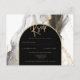 Introducing our luxurious black and gold wedding stationery collection, featuring a stunning smokey black and white with gold accents agate look backdrop and arch frame for the text. This design is perfect for couples who want to add a touch of elegance and sophistication to their wedding stationery.