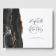 This elegant wedding guest book features a black watercolor agate design trimmed with faux gold glitter. Easily customize the charcoal gray text on a white background, with the names of the bride and groom in whimsical handwriting calligraphy over a large gray ampersand. Add additional text of your choice to the front and spine.