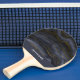 Personalized ping pong paddle with a beautiful image of dark abstract agate stone. Colors swirl in waves. Main colors are black, blue-gray with a faux-gold ribbon running through the design. Modern and trendy.