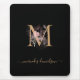 Modern Black Gold Blush Pink Floral Monogrammed Mouse Pad
