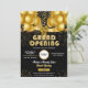 Make your business launch unforgettable with this modern and sophisticated invitation design. This stunning template adds an aesthetic touch to your grand opening event, featuring a black and gold color palette. The vibrant graphic elements, including balloons, confetti, ribbons, and scissors, create an atmosphere of excitement and festivity.