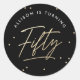 Modern Black Gold Calligraphy 50th Birthday Classic Round Sticker