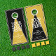 About the design: Modern black and gold triangular shape in the middle, inverted colors for the opposite cornhole board.