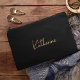 This is a modern black and gold calligraphy personalized makeup bag. Perfect for organizing makeup products or everyday essentials. Also a perfect gift for bridesmaids, maids of honor and mothers.