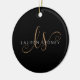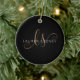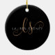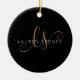 Modern Black Gold Feminine Script Monogrammed Ceramic Ornament