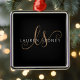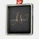 Modern Black Gold Feminine Script Monogrammed Metal Ornament