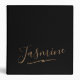 Modern Black Gold Feminine Script Name 3 Ring Binder