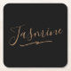 Modern Black Gold Feminine Script Name Square Paper Coaster
