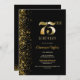 Modern Black Gold Glitter 75th Birthday Party Invitation