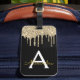 Black and Gold Glitter and Sparkle Monogram Name and Initial Luggage Tag. This bag tag is perfect for Wedding or Bridal Shower Favor, Honeymoon, Back to School, Beauty Salon Work, or Traveling.