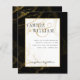 The black and gold color palette creates a sense of opulence and luxury, adding a touch of glamour to your wedding celebrations. The agate look backdrop and white frame for the text provide a stunning focal point, setting the perfect tone for your special day. Black and golf wedding invitations are perfect for a black tie wedding, art deco, classic, and elegant wedding themes.