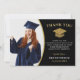 Modern Black Gold Graduate Photo Graduation Thank You Card