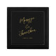 This personalized modern wedding gift box features the bride and grooms names and wedding date in hand lettered faux gold script on a simple back background. Makes a uniqe gift for newlyweds. Designed by Susan Coffey.