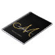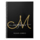 Modern, trendy girly black and gold custom personalized monogrammed spiral notebook. This simple elegant design features white cursive hand lettering name with swashes in white and a huge hand-writing monogram script in gold color on black background. This feminine, pretty notebook is a perfect gift idea for business, professional, school, birthday party , wedding and any party or occasion for someone that like girly and modern styles. If you need help or matching item please contact to designer.