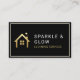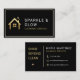 Promote your cleaning services with this modern black and gold business card featuring a sleek minimalist layout and house icon design. Perfect for housekeepers, residential cleaning services, and maid service businesses, this professional card keeps your company name, tagline, and contact details sharp and easy to read. The bold black background with gold accents communicates reliability and sophistication while staying print-ready.