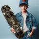 This elegant modern, black skateboard is suited for holidays and all occasions. The design features golden leafy swirls on a black backdrop with a placeholder for "Name" that can be easily personalized. Perfect for kids and adults alike.