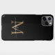 Modern Black Gold Monogram Feminine Script Name Phone Case