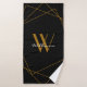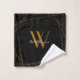 Modern Black Gold Monogram Geometric Name Script Bath Towel Set