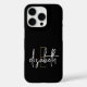 Add a unique touch to your phone with this sleek and stylish black, white and gold monogrammed cell phone case. This modern and sophisticated design features your own personal name and initial gracefully scripted in white and gold. The black background provides a chic backdrop while the white script adds a touch of elegance. This personalized monogrammed case is the perfect way to show your individual style.