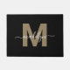 Create Your Own Custom Elegant Modern Black Gold Initial Monogram Script Name Doormat. This chic, luxurious doormat adds a sophisticated touch to any entryway with its unique monogram design on a black background, featuring a flat gold initial letter —no shimmer or foil—paired with a flowing white script name for a beautifully personalized look. Ideal for new homeowners, newlyweds, or as a wedding gift, this pretty monogrammed doormat is a thoughtful choice for housewarming parties, Christmas, or any special occasion. Perfect for adding a touch of luxury to a college dorm room, apartment, or family home, this stylish doormat blends functionality with a hint of elegance, creating a welcoming statement at the front door.