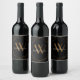 Modern Black Gold Monogram Name Script Geometric Wine Label