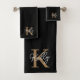 Modern Black Gold Monogram Script Bath Towel Set