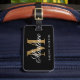 Modern Black Gold Monogram Script Luggage Tag