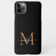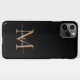 Modern Black Gold Monogram Script Name iPhone case